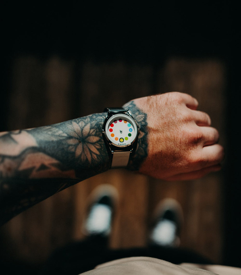 Instead of the conventional hour and minute hands, Cyclops has a single circle to mark the time.