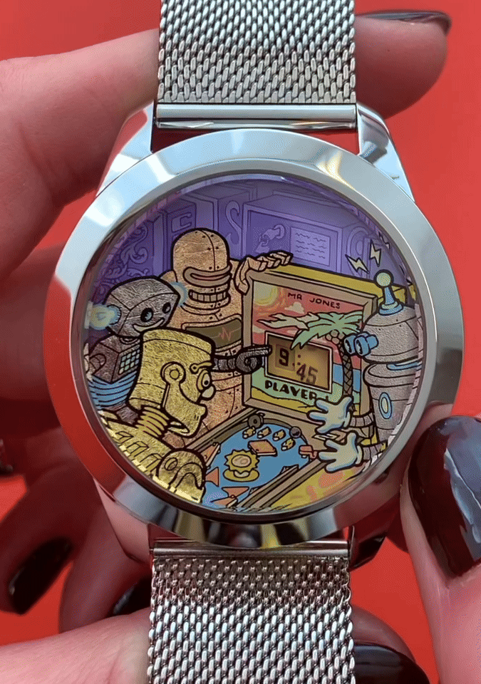 This is the XL version of the Ricochet watch. The 45mm case is just the right size for the larger wrist. You'll notice this version has an additional player too!