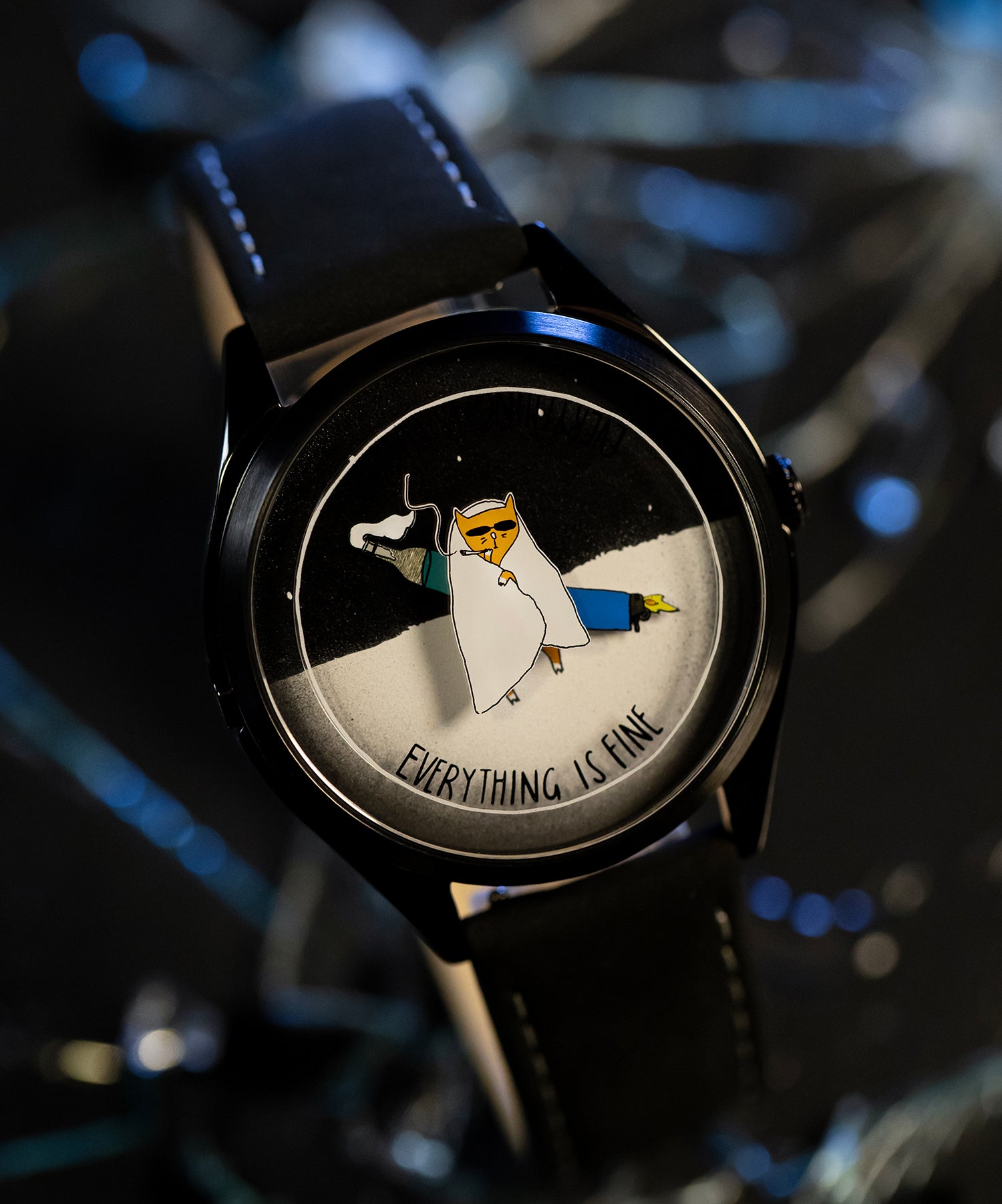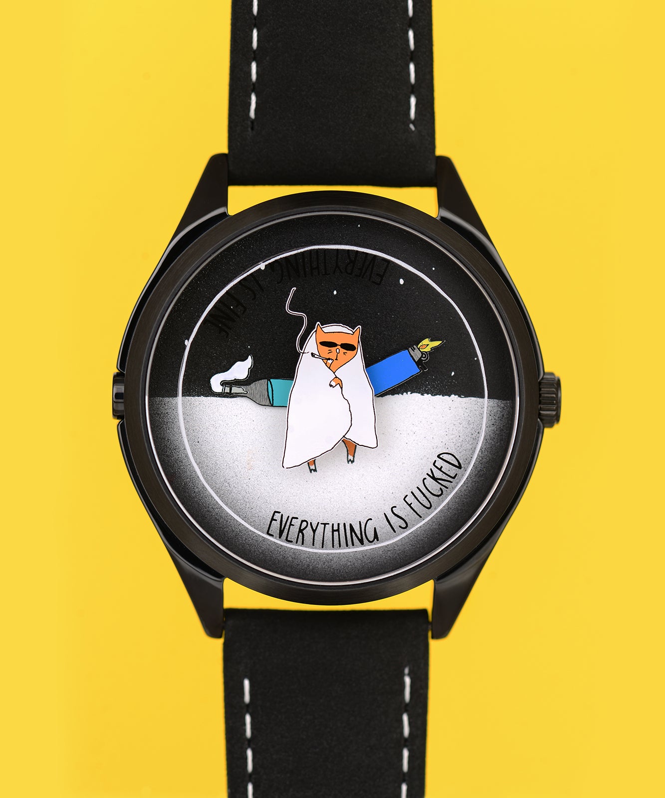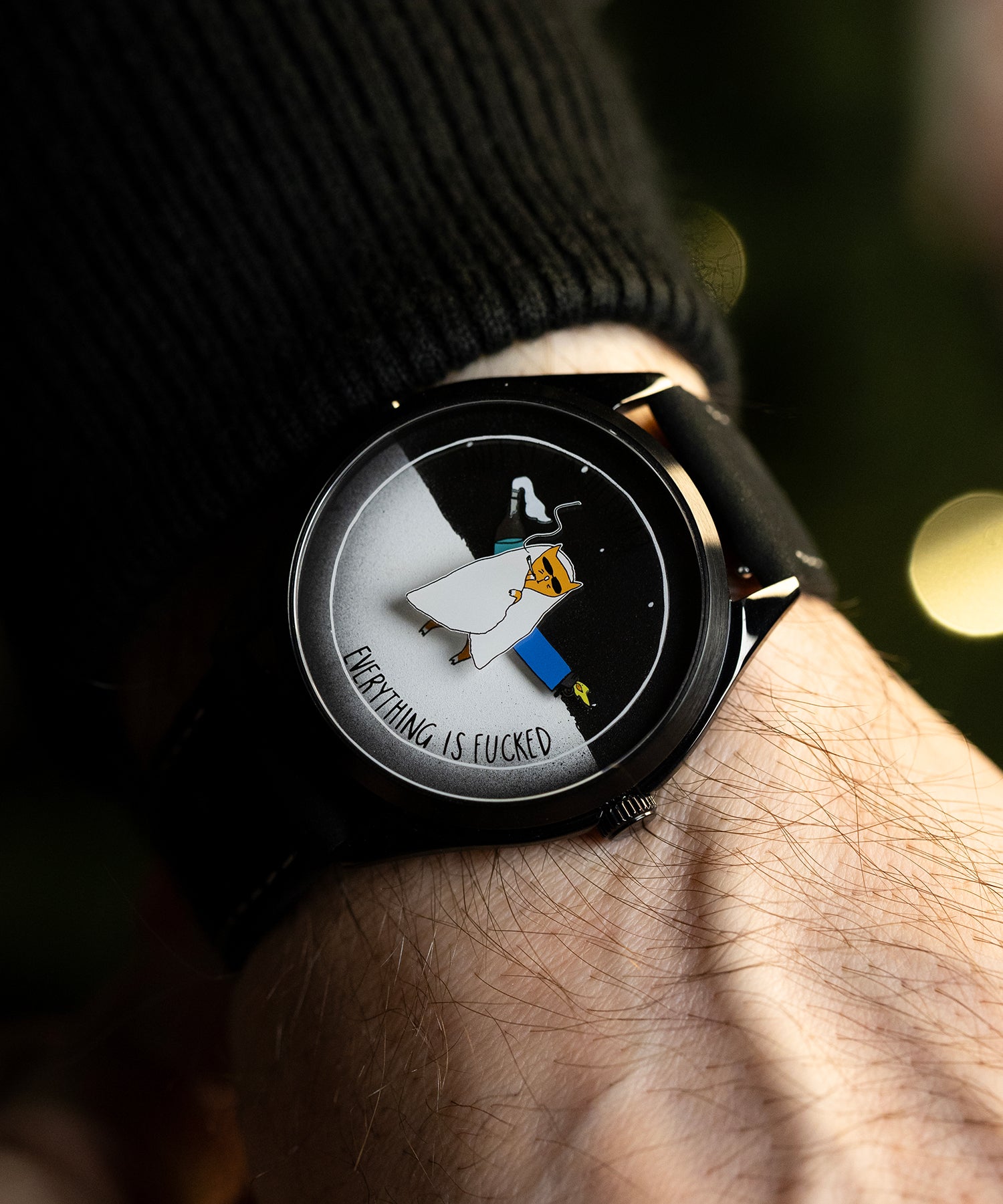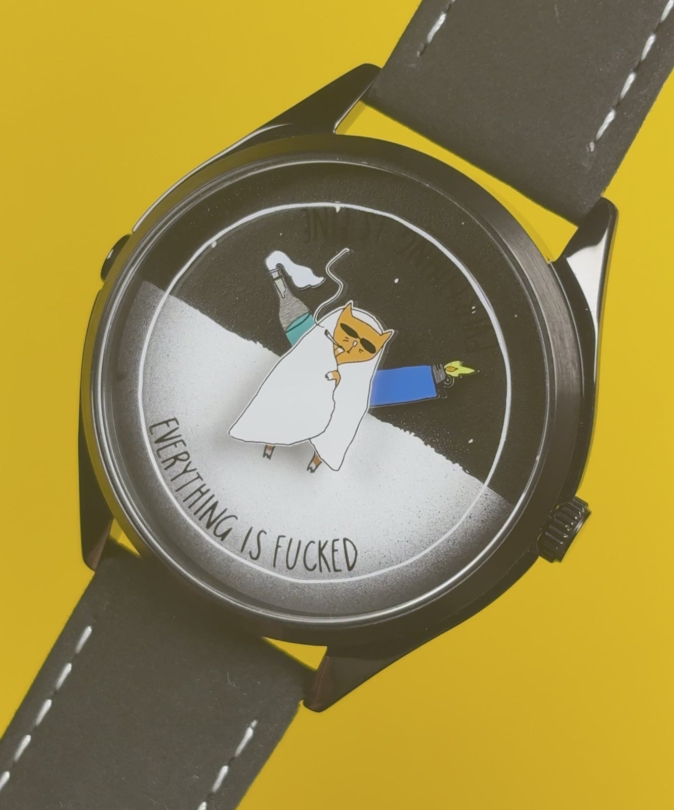 As seconds pass, the watch face alternates between throwing the phrase ‘everything is fine’ and ‘everything is fucked’, perfectly capturing the fine line we all walk between optimism and pessimism.