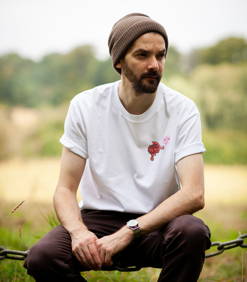 Designed by Monster Melter's Artist, Onorio D’Epiro, the t-shirt shows the spaceman's victory in defeating the terrifying man-eating alien.