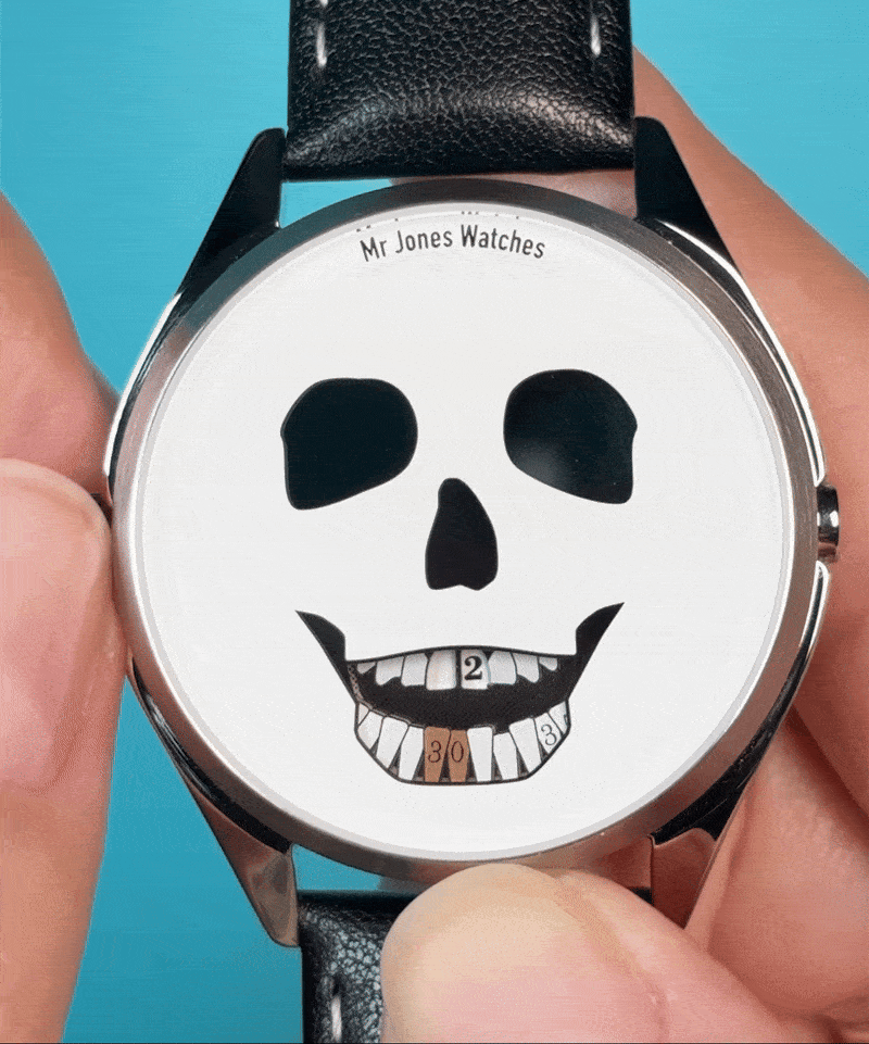 The Last Laugh is powered by a 20 jewel automatic mechanical movement.