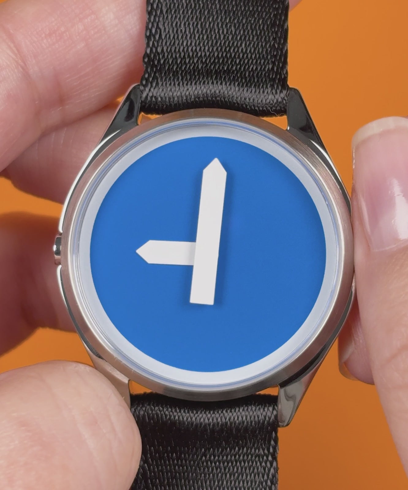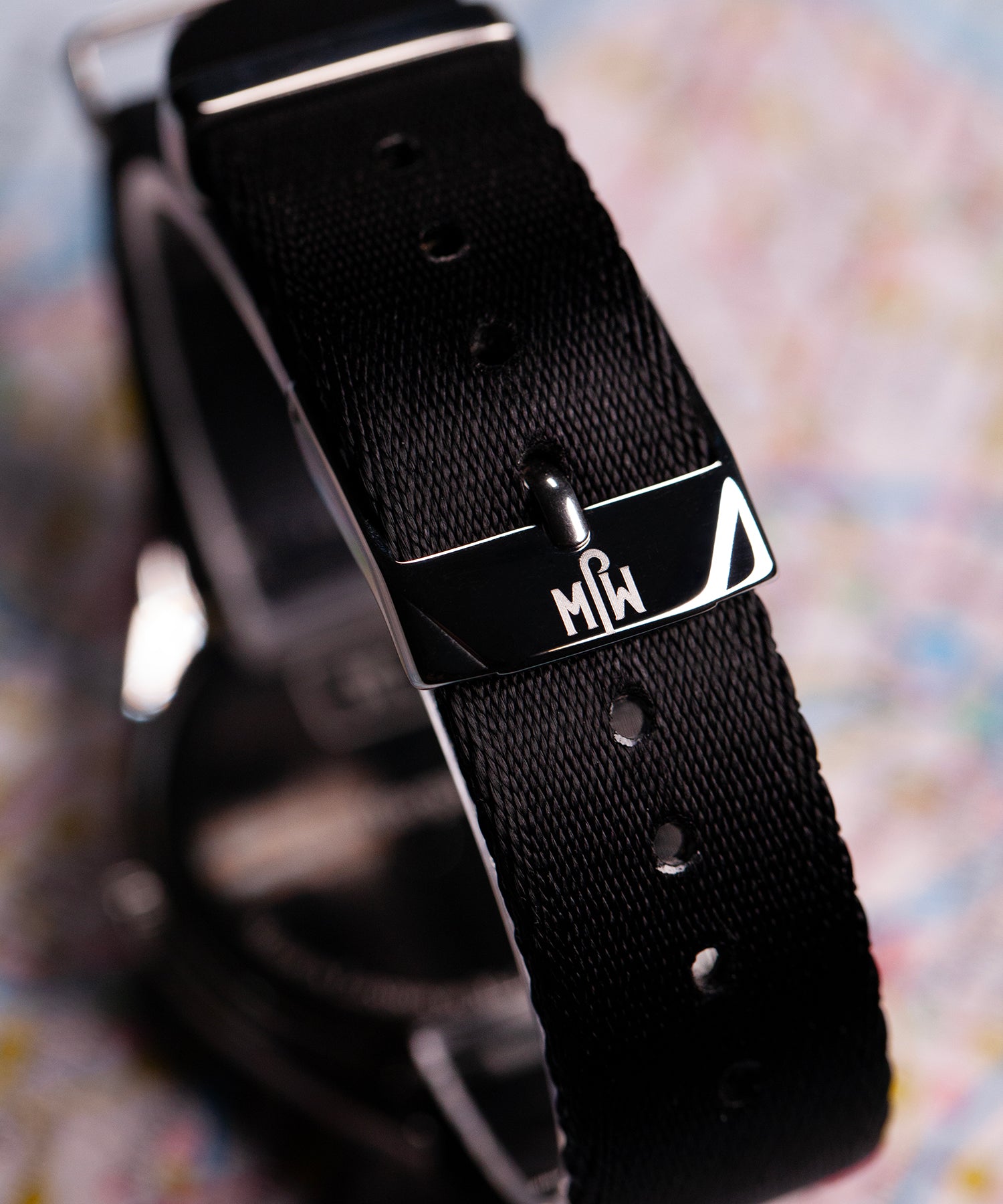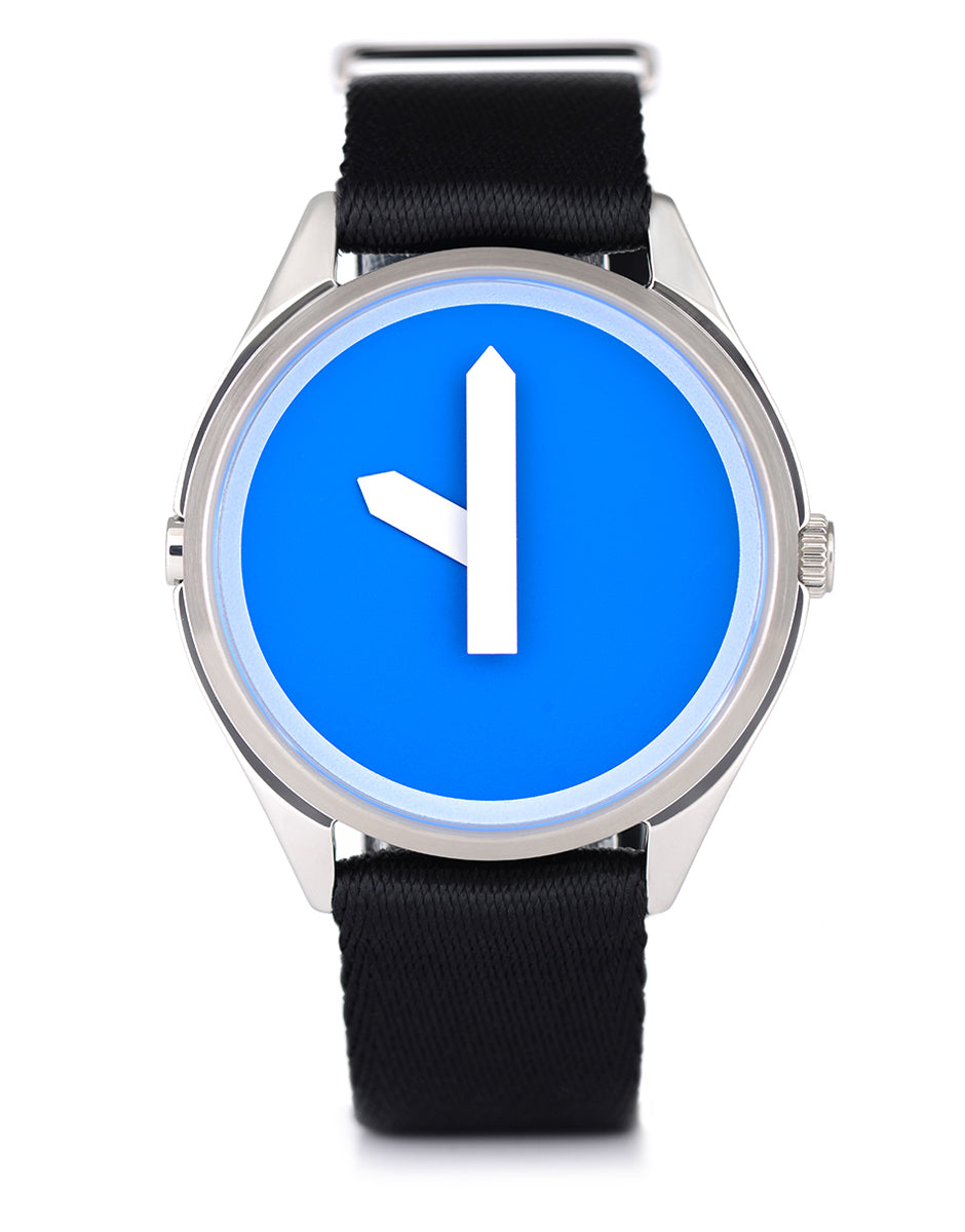 The hands of the watch are inspired by the white navigational arrows from the motorway sign and the strap is cleverly made from seat belt fabric - a nod to the drivers the signs were originally designed for.
