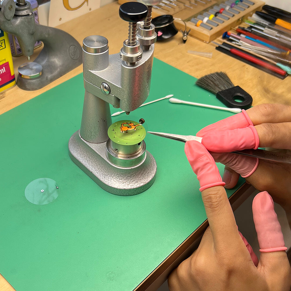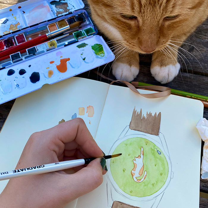 It is through her teacher Kristof Devos, the designer of Mr Jones Watches’ most popular watch A perfectly useless afternoon, that she came across the brand.