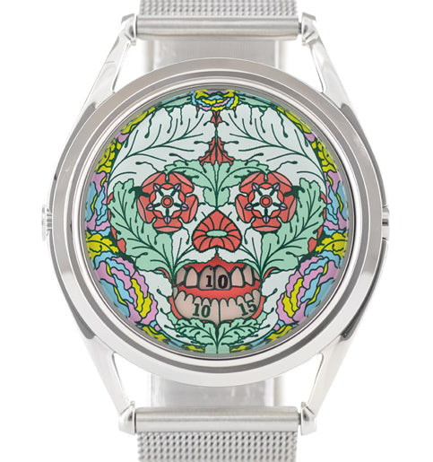 This watch was designed by Edward Monaghan. On the face of The Last Bloom you can see a skull made from a colourful arrangement of leaves and flowers.