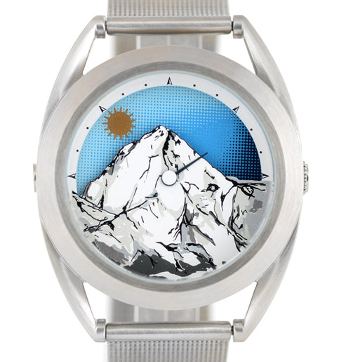 Paul Wardski designed and printed the Wanderlust watch. The bright contrasting colour in sky slowly changes to track from day to night.