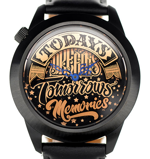 It’s a special edition of our famous skull watch, Last Laugh Tattoo.