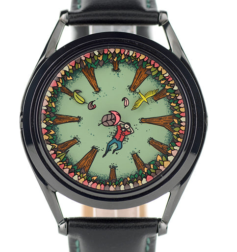 This colourful watch was designed by illustrator Fanny Shorter. This version of the Promise of Happiness watch was limited to just 100 numbered pieces.