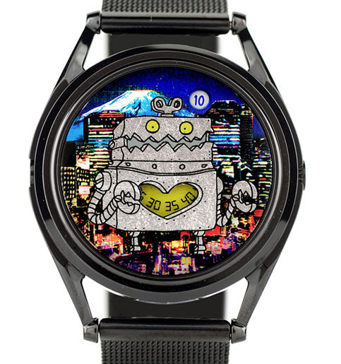 Character designer Onorio D'Epiro designed this fun watch. Robotto Shi was designed as a companion piece to Number Cruncher.